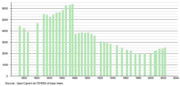 - ↑ Fiches Insee - Populations de référence de la commune pour les années 2006, 2007, 2008, 2009, 2010, 2011, 2012, 2013, 2014, 2015, 2016, 2017, 2018, 2019, 2020, 2021 et 2022.