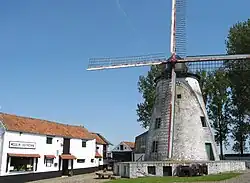 Classé comme monument le et restauré en 1990 grâce à une très large contribution des pouvoirs publics, ce moulin à vent circulaire et taluté fut bâti en briques en 1830.