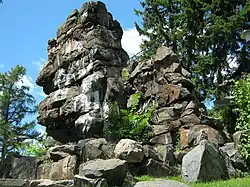 Voici le résumé de la légende telle que citée par Isabel C. Armstrong. La fille unique d'un chef s'était éprise d'un guerrier. Le père accepta le mariage à la condition que le prétendant rapportât une grande quantité de peaux de bisons et de caribous comme preuve de son courage et de son amour. La jeune fille et le trappeur se jurèrent fidélité au-dessus d'un grand rocher dans la rivière. Le trappeur partit et la jeune fille l'attendit, pendant des années.Le trappeur ne revint jamais. La jeune fille ne trahit jamais sa promesse. Il y a deux dénouements attribués à cette légende: le premier, au moment où la femme mourut, un éclair traversa le ciel et le roc se fendit pour laisser la figure d'une vieille tournée vers le Nord. Le deuxième dénouement: la fiancée s'est métamorphosée en rocher comme symbole de sa fidélité[3].