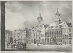 L'Hôtel de ville et à l'arrière, sur la gauche, le beffroi