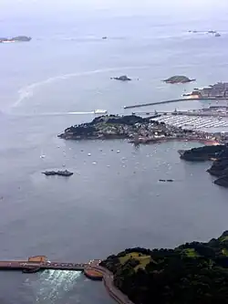 Une dépression naturelle sépare l’île de la ville et est rarement sèche, même à marée basse. Une chaussée cimentée surélevée permet d’y accéder. Celle-ci est récente.