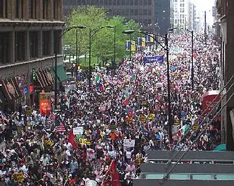 Certaines sources estiment que plus d'un million de personnes ont participé aux manifestations[1]. Le rectorat de Los Angeles ainsi que la ville de Chicago ont connu de fort taux d'absentéisme scolaire, ainsi que dans toutes les écoles du pays où la proportion d'Hispaniques est importante. Des centaines de milliers d'immigrants illégaux et de partisans d'un assouplissement de la politique de l'immigration, vêtus de blanc pour symboliser la paix, ont participé à des manifestations à travers tous les États-Unis. Les plus importantes se sont déroulées à Los Angeles et à Chicago. De nombreux participants arboraient des drapeaux américains, bien que d'autres préfèrèrent des drapeaux mexicains ou sud-américains voire marxistes[2]. À Chicago, des drapeaux irlandais et polonais ont été également arborés[3].