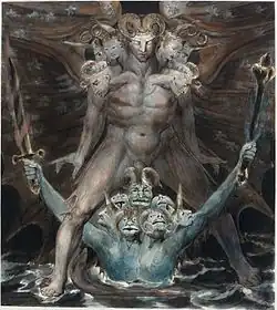 Durant cette période, Blake fut chargé de créer plus d’une centaine de peintures pour illustrer des livres de la Bible. En particulier, cette tétralogie s’appuie sur la description du Grand Dragon Rouge de l’Apocalypse :