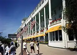 Après son exploration à partir du XVIIe siècle, l'île Mackinac devint un endroit stratégique pour le commerce des fourrures. En 1886, les compagnies ferroviaires Michigan Central Railroad et Grand Rapids and Indiana Railroad achètent des terres sur l'île pour y construire un hôtel. L’hôtel ouvre en 1887 et sa promotion est faite dans les grandes villes du Nord-Est des États-Unis et au Canada, en vue d'attirer des touristes dans la région en été. L'île a en effet été classée en tant que parc national dès 1875[1].