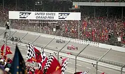- Le drapeau à damier a été abaissé par le président du Speedway, Tony George, qui a réussi à réaliser son rêve de faire revenir la Formule 1 aux États-Unis.