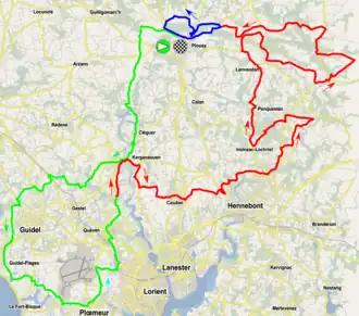 Le circuit final comporte de 3 côtes : la bosse de Rostervel - 1,5 km à 4,5% ; la bosse du Lezot - 900 m à 5,3% et la bosse de Kerscoulic - 225 m à 8,9%.