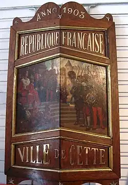 Sur l'un des pavois exposés au musée Paul-Valéry à Sète figure les noms des vainqueurs du « grand prix de la Saint-Louis » de 1846 à 1913.