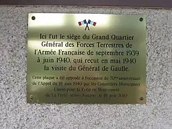 - La Ferté-sous-Jouarre, implantation de l'essentiel du GQG (cabinets du général Georges, adjoint du général Gamelin chargé du front du Nord-Est, et du major général, le général Bineau, aides-majors généraux, les 1er, 2e, 3e et 4e bureaux, les bureaux du courrier et du personnel, les troupes de garde, du train et des transmissions) ; l'hôtel des Bondons, légèrement à l'écart de la ville, à l'est, est notamment réquisitionné ;