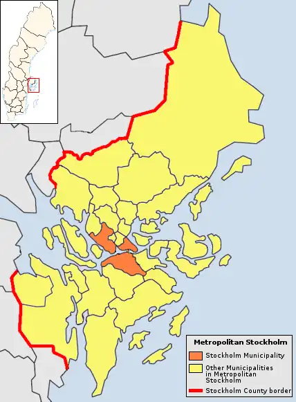 Elle regroupe toutes les communes du comté de Stockholm, à l'exception de Norrtälje, Nykvarn, Nynäshamn, and Södertälje.