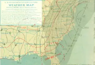 Du 11 et le , de 50 à 75 cm de neige ont été enregistrées du centre de la Virginie à l'ouest du Connecticut[5]. High Point (Caroline du Nord) a enregistré de 25 à 30 cm de neige et Washington, DC a signalé une chute de neige de 52 cm en une seule journée, un record pour l'époque[3]. À Cape May au New Jersey, il a été enregistré près d'un mètre de neige dans cette ville balnéaire populaire[5]. Les congères étaient plus hautes que les chevaux et les voitures qui tentaient de naviguer dans les rues, provoquant l'arrêt de pratiquement tous les transports dans la région[5].