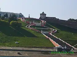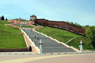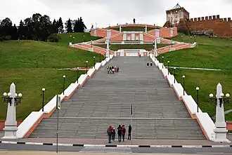 Le grand escalier de Tchkalov (russe : Чкаловская лестница) est un escalier monumental situé dans le centre de Nijni Novgorod, reliant la place de Minine et Pojarski, le quai supérieur de la Volga et le quai inférieur de la Volga. Il a été construit par les architectes Alexandre Iacovleff, Lev Roudnev et Vladimir Munts. C'est le plus long escalier de Russie[1]. L'escalier part du monument de Tchkalov, près de la tour Saint-Georges du Kremlin. Il est construit en forme de huit et se compose de 560 marches, en comptant les deux côtés. Le nombre de marches de bas en haut est de 442 à droite. Aux intersections des pentes latérales, il y a deux plates-formes d'observation. Au bas de l'escalier se trouve un monument au bateau Héros, situé sur le talus de la Basse-Volga.