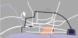 - ↑ Les travaux de référence donnent une superficie de 330 acres à l’intérieur du mur romain (voir par exemple Sheppard 2000, p. 37). Tinniswood donne quant à lui une superficie d’un mille carré (667 acres).