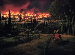 - ↑ Voir l'article Tempête de feu pour plus de détails.