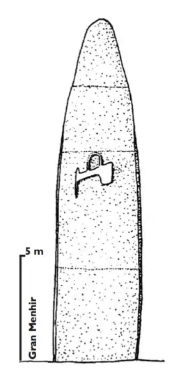 Ce menhir, aujourd’hui à terre et divisé en quatre fragments, aurait été érigé au milieu du Ve millénaire av. J.-C.. Ses dimensions exceptionnelles (21 mètres et 300 tonnes) en font le plus grand mégalithe d'Europe.