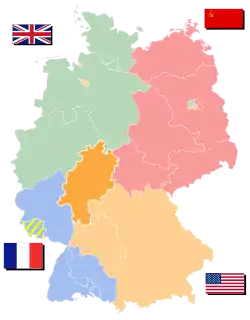 - Les provinces prussiennes de Hesse (capitale : Cassel) et de Nassau (capitale : Wiesbaden). Ces deux provinces furent constituées lors de la scission de la province de Hesse-Nassau en 1944.