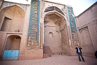 L'édifice obéit à un plan de tradition seldjoukide de la région du Khorassan. La cour est entourée de bâtiments, pourvus d'iwans et un pavillon à coupole[3]. Les salles de prière sont munies de colonnes et de coupoles. La cour centrale mesure 59,5 m sur 91,4 m[4].