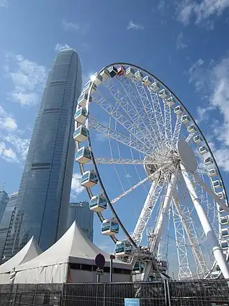 La Grande roue de Hong Kong (香港摩天輪) est une grande roue de 60 mètres de haut installée à Hong Kong dans le quartier de Central depuis 2014[1]. Elle dispose de 42 télécabines dont une télécabine VIP avec des sièges en cuir et un sol en verre. Toutes les télécabines sont équipées de climatiseurs et de systèmes de communication, et peuvent accueillir un maximum de huit personnes, à l'exception de la télécabine VIP qui ne peut accueillir que 5 personnes. Chaque trajet comprend deux à trois tours et dure environ 15 minutes[2].