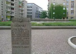 Après la réunification de l'Allemagne, il est décidé de construire un mémorial plus important à l'emplacement de la synagogue, mais de conserver la stèle. Celle-ci est fréquemment parsemée de petits cailloux, symbole du souvenir dans la religion juive.