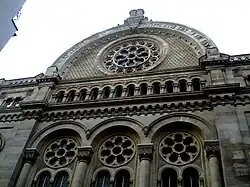 - ↑ Outre la Grande Synagogue, il s'agit de la synagogue des Tournelles, la synagogue de la rue Pavée, la synagogue Nazareth, la synagogue de la rue Copernic et la synagogue Sainte-Isaure.