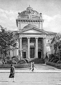 Une nouvelle compétition architecturale est annoncée en , gagnée cette fois par Stanisław Adamczewski, mais son projet une fois encore, n'est pas accepté par le comité de construction de la synagogue[4]. Finalement le projet commandé à l'architecte Leandro Marconi est accepté le par le gouverneur du royaume, le général Friedrich Wilhelm Rembert von Berg[4].