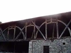 Dans les anciennes granges, la partie supérieure était utilisée pour stocker le foin et parfois le blé, plus généralement les récoltes[3]. Le foin était placé sur une plate-forme, hissée vers le haut par l'intermédiaire d'un système de poulies accrochées dans un coin du hangar.