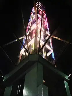 C’est la première sculpture française « chronodynamique cybernétique », c’est-à-dire en interaction avec le temps et l’espace : en effet, les néons qui tapissent la tour s’allument et s’éteignent au gré du flux de voyageurs dans la station de métro.