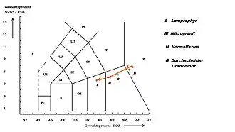 Formellement, les roches du massif se présentent comme de la granodiorite dans le diagramme QAPF mais sont à proximité immédiate du champ de granite. Chimiquement ce sont des granites — pour être plus précis ce sont des adamellites —. Or, dans le diagramme TAS, ils représentent des rhyolites.