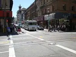 Elle est orientée Nord-sud, et est en sens unique. Elle se situe au cœur du quartier chinois, et relie Market Street au Pier 39.