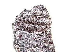 - ↑ Les amphiboles ou les micas ne peuvent survivre aux conditions pression/température auxquelles se forment les granulites. Ils se transforment donc en pyroxène et en grenat en évacuant de l'eau.