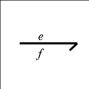 On peut remarquer deux éléments sur cette liaison. La lettre e représente la composante effort de la liaison. La lettre f représente la composante flux de la liaison. La multiplication de ces deux termes doit donner la puissance qui transite par la liaison. Cet élément est orienté dans le sens où la puissance est positive.