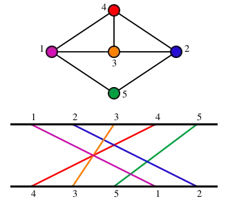 On définit les graphes de permutation de la manière suivante. Les sommets représentent les éléments d'une permutation, et les arêtes relient les paires de sommets dont les éléments sont inversés dans la permutation[1].