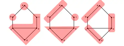 Ces trois partitions de l'entier 6 peuvent être appliquées respectivement pour partager le graphe comme ceci :