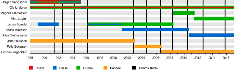 - ↑ « Grave : Départ du bassiste Fredrik Isaksson », sur Spirit of Metal, (consulté le ).