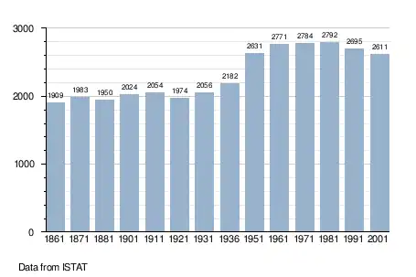 - ↑ (it) Popolazione residente e bilancio demografico sur le site de l'ISTAT.