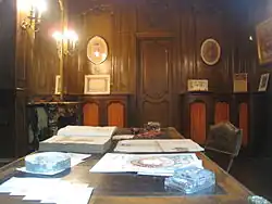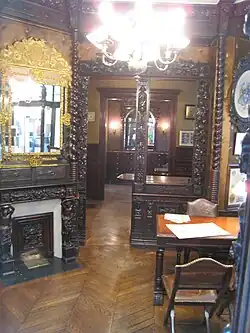 L'intérieur est décoré de murs de cuir de Cordoue et de boiseries anciennes du XVIIe siècle et le sol est revêtu d'un rare parquet fougère.