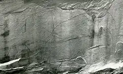 Lhote rapporte qu'une longue tranchée ouverte au pied de la gravure n'a donné aucune indication sur le procédé de polissage et l'outillage utilisé.
