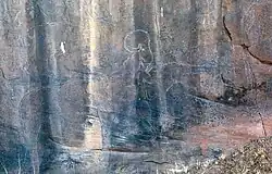 Le site présente plusieurs figurations humaines, l'une aux jambes fléchies datant de l'étage bubalin, une autre, postérieure, d'un homme couché sur le dos associé à quatre félins.