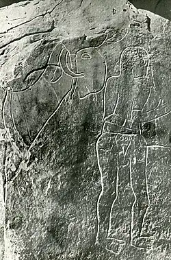 - ↑ Paul Huard et Léone Allard-Huard, Nouvelles gravures rupestres du Sud-Oranais, dans Bulletin de la Société préhistorique française, tome 77, n°10-12, 1980. Études et Travaux. pp. 442-462.