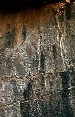 Des chevaux et des chameaux (considérés comme introduits au IIIe siècle de notre ère) de petite taille s'y trouvent associés à des inscriptions diverses sans patine.