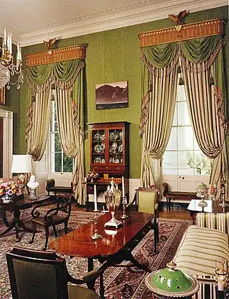 - (en) Cet article est partiellement ou en totalité issu de l’article de Wikipédia en anglais intitulé « Green Room (White House) » (voir la liste des auteurs).