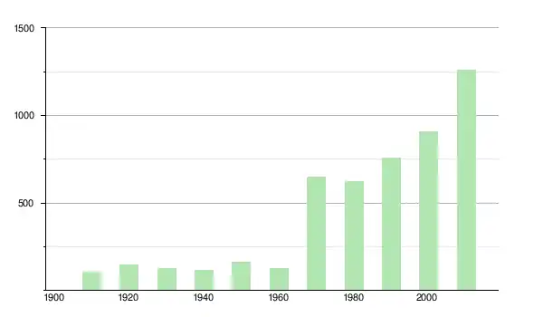 | 1970 | 650 | ▲ +411,81 % | |