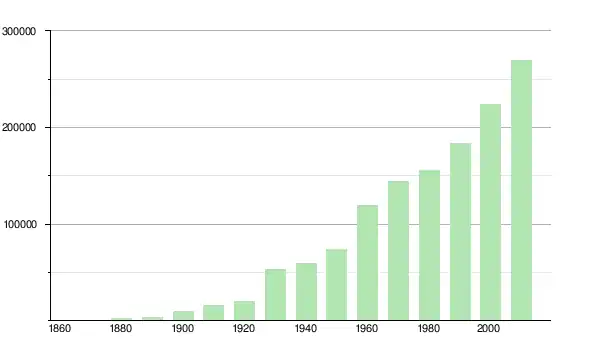 | 1880 | 2 105 | ▲ +323,54 % | |