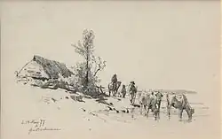 - Ferme avec perrons, moutons et bétail (1879) au Victoria and Albert Museum à Londres ;