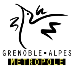 Le logotype de Grenoble-Alpes Métropole est composé d'un dessin d'oiseau et d'une cartouche typographique (sur un fond jaune, couleur de la métropole). « L'oiseau forme les contours géographiques de l'agglomération : |