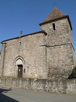 Située à l'entrée du village en venant de Chabanais, l'église est caractéristique, avec son clocher carré et bas, son toit de tuiles plates et son coq gaulois, et représentative des constructions limousines, avec ses épais moellons de granite, et des baies surmontées d'un linteau creusé en plein cintre[40]. La nef unique est prolongée d'un chevet plat.