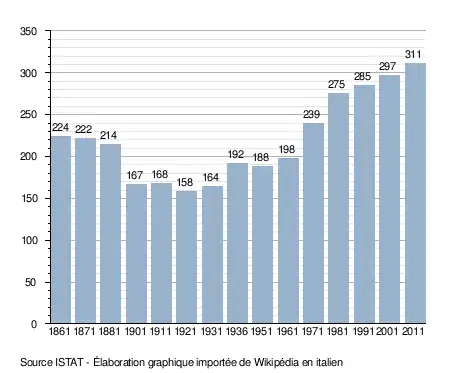 - ↑ (it) Popolazione residente e bilancio demografico sur le site de l'ISTAT.