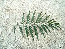 Les feuilles sont vert foncé sur le dessous, blanches ou gris rouillé dessous. Leur limbe étant profondément découpé jusqu'à la nervure centrale, les feuilles, pourtant simples, semblent donner l'apparence de feuilles bipennées. Elles mesurent généralement 15 à 30 cm de long[2].
