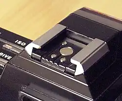 - La griffe sans contact des anciens appareils ou elle servait soit à fixer un télémètre, un flash ou une cellule indépendante. La synchronisation du flash se faisait par un câble reliant le flash à une prise sur l'appareil.