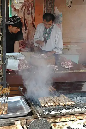 La viande peut être grillée, par exemple, sur des braises, sur un gril, un barbecue ou une planche à griller.