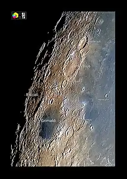 Grimaldi est un large bassin situé près du flanc ouest de la face visible de la Lune. Il se trouve au sud-ouest de l'Oceanus Procellarum et au sud-est du cratère Riccioli. Avant Oceanus Procellarum se trouve le cratère Damoiseau, et au nord se trouve Lohrmann.